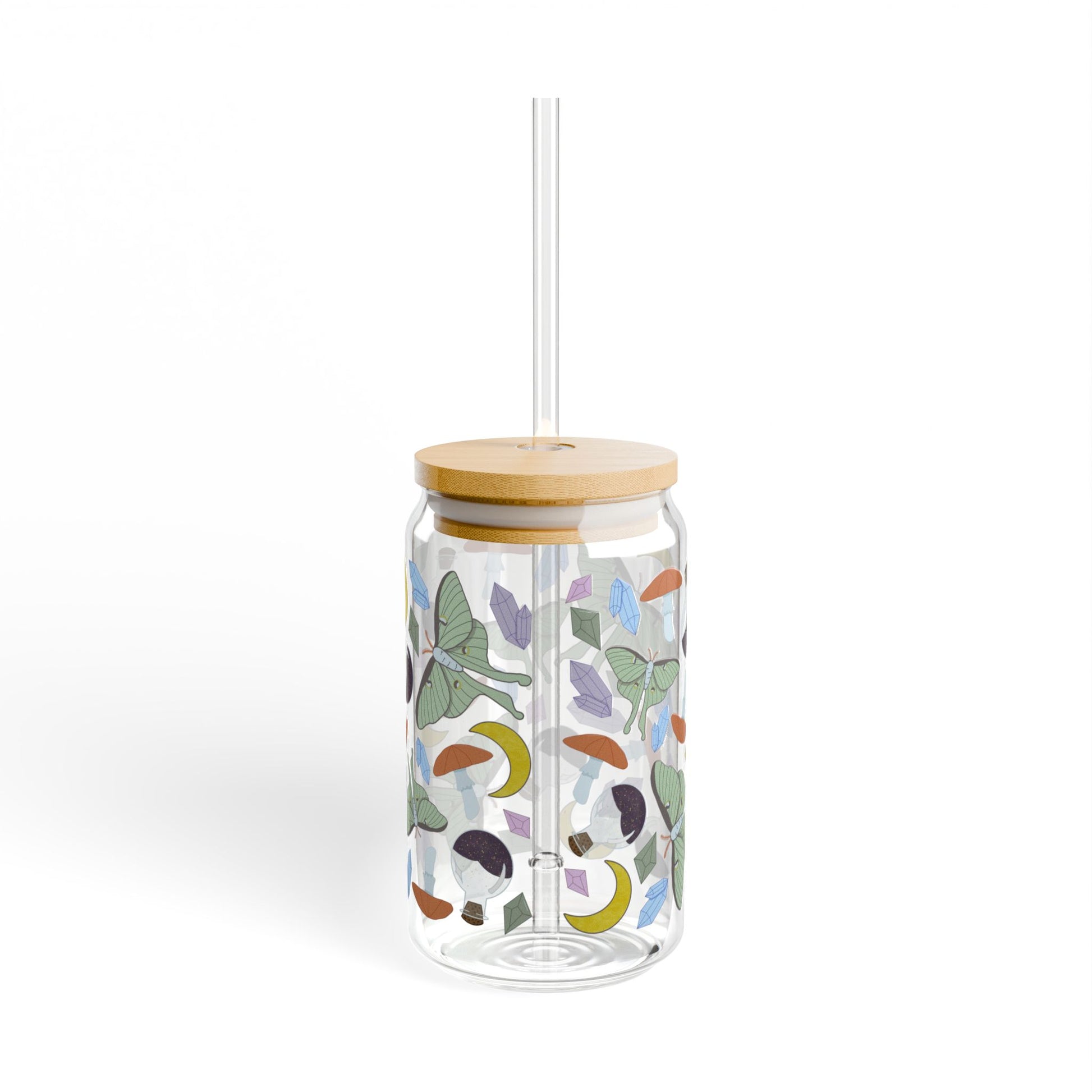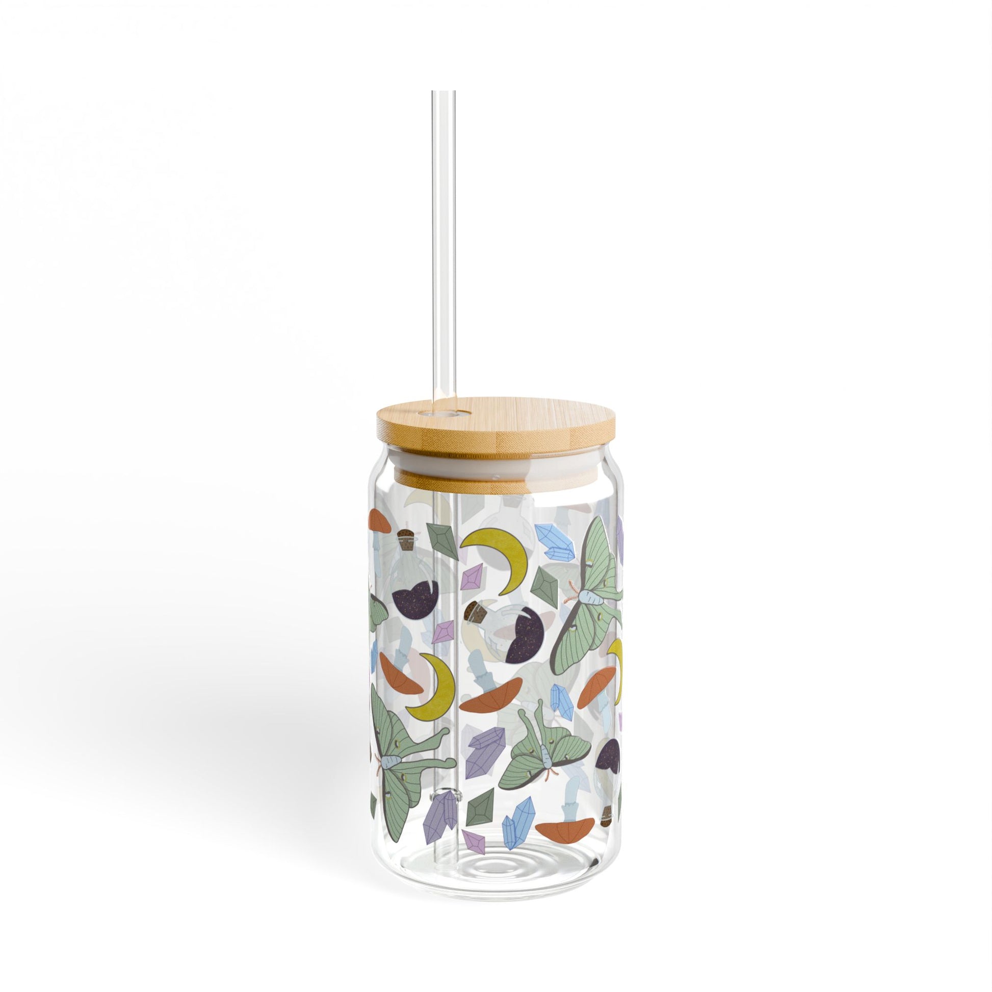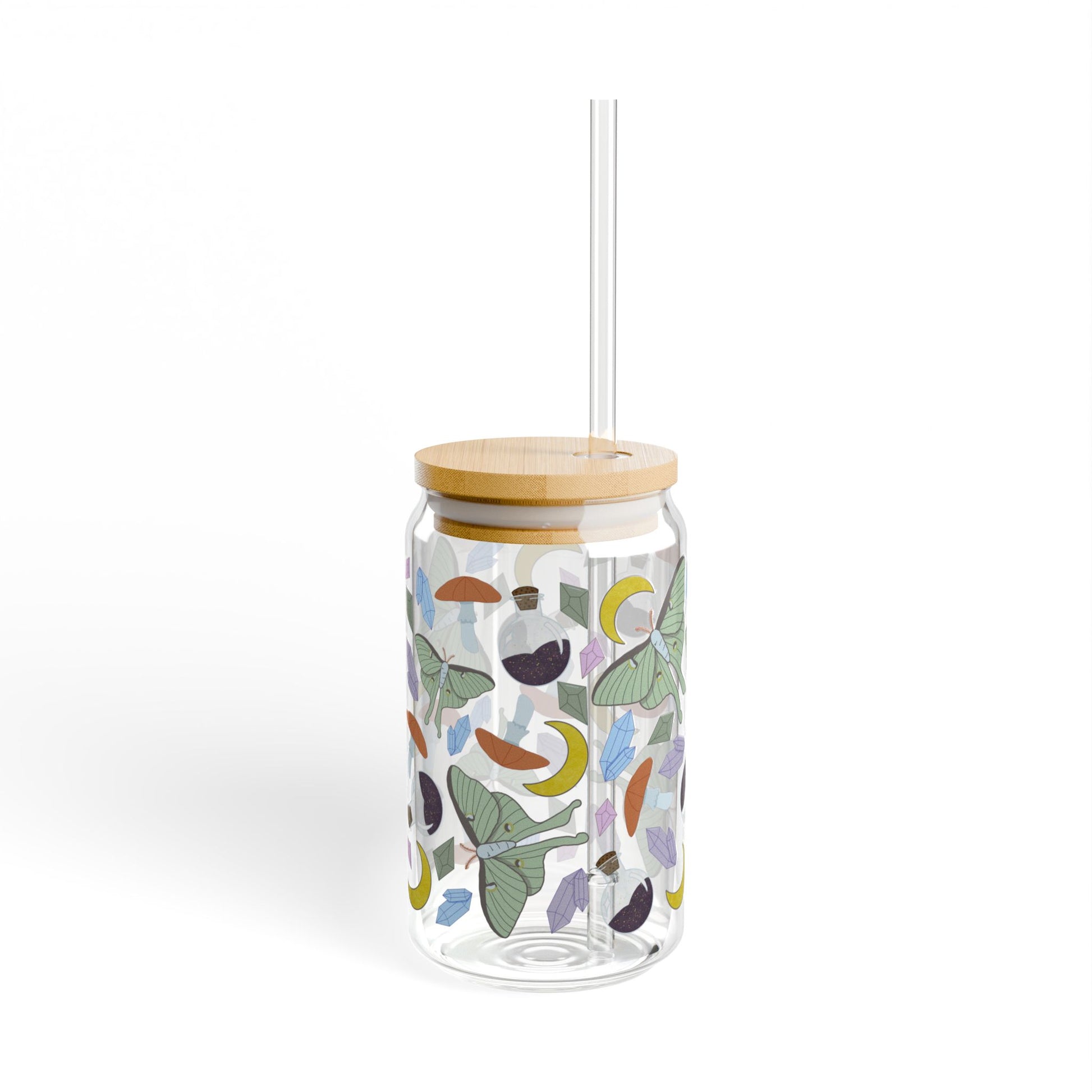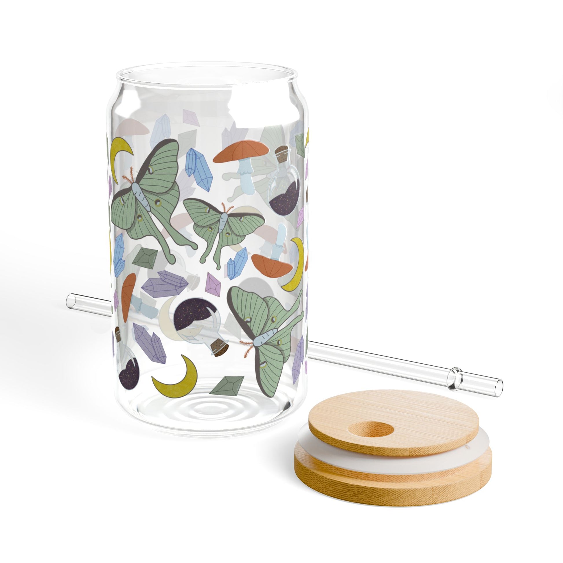 Sip in style with this enchanting 16 oz glass can cup, adored with a dreamy mix of Luna moths, crescent moons, potion bottles and mushrooms. Perfect for ice coffee, tea, or sparkling water, this cup brings a touch of magic to your everyday routine.